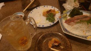 ヒレカツとワラサとイカ刺し ★★★★★ めちゃくちゃ食べ途中の写真しか撮ってませんでした。 お店の雰囲気は、昔からある地元の人がほとんどの店でした。意外と奥行きがあって席も多かったです。 食べたもの ポテサラ...